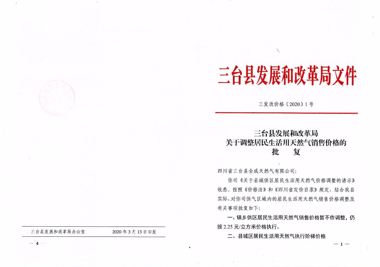 关于调整居民生活用天然气销售价格的通知